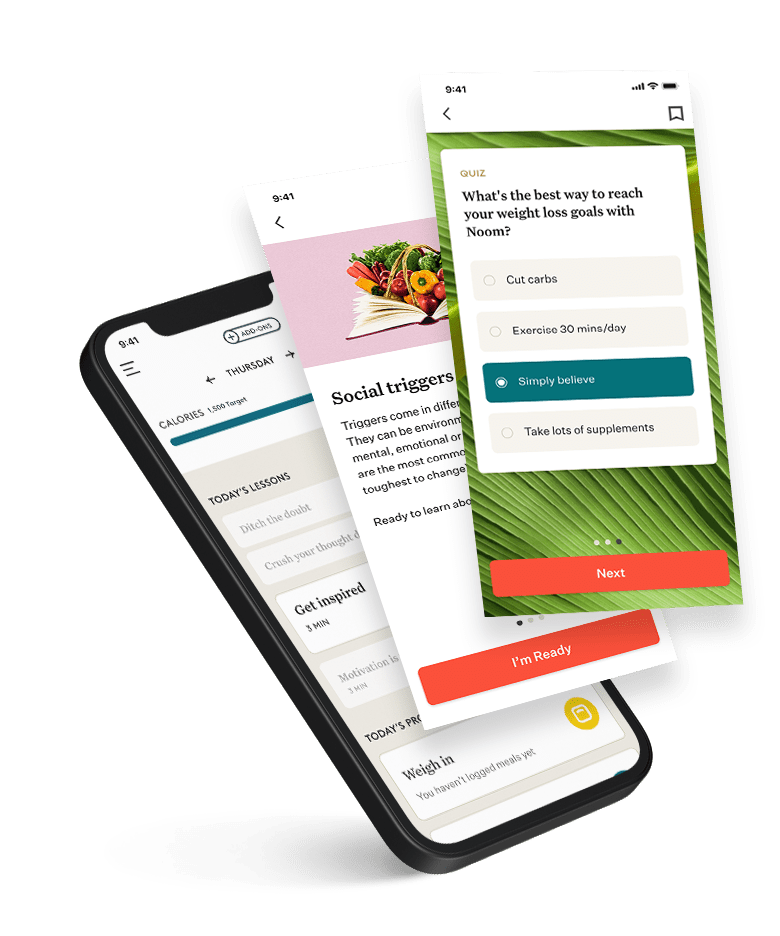 Cuando te inscribes en Noom, recibes pequeñas lecciones diarias que están fundamentadas en los descubrimientos más recientes en psicología y ciencias del comportamiento. Nuestros cursos personalizados son divertidos, fáciles de seguir y te ayudarán a ganar confianza mediante herramientas que puedes poner en práctica desde el primer día.