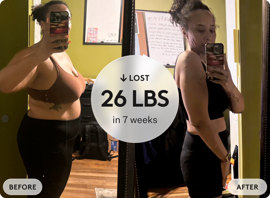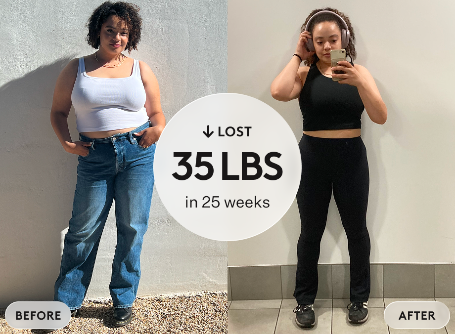 *Weight loss represents the top 25th percentile of self-reported data from 1,597 Noom Med users prescribed compounded GLP-1s. Average weight loss was 25 pounds.